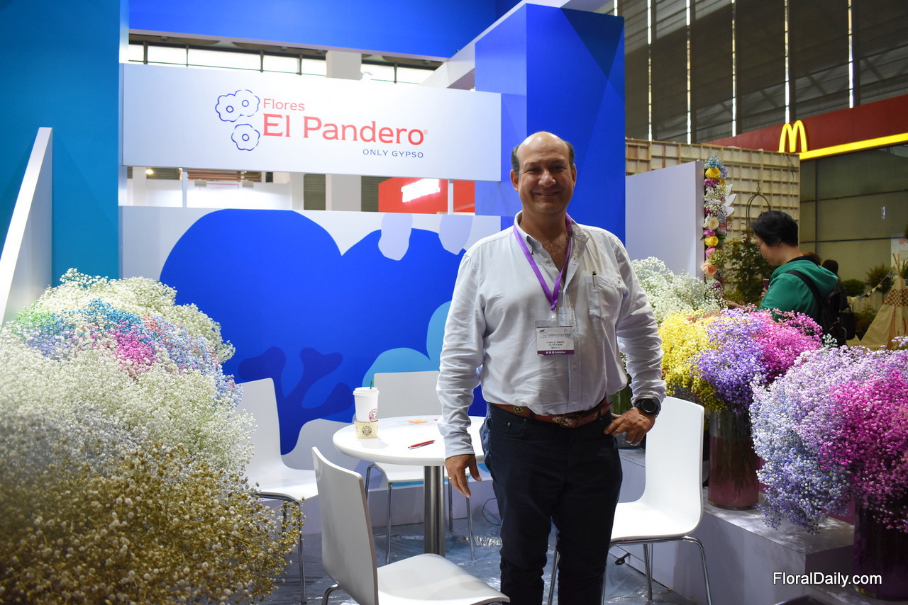 Diego Vega of Flower Village is exhibiting at the Hortiflor Expo for the first time. They already exported flowers to China in the past and they are looking for opportunities to increase the volumes to China.