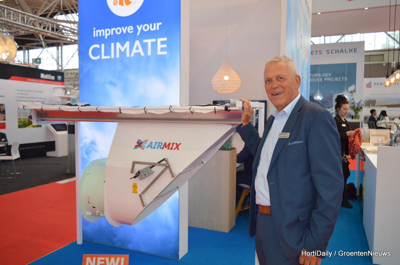 Ton van der Kooy:"'The purpose of the Airmix system is to facilitate adequate ventilation and dehumidification in greenhouses with shading screens while the screening fabric is fully rolled out. The Airmix draws in air from above the screen and expels it into the cultivation area below. As the Airmix can also be used as a horizontal circulation system it is, in fact, multifunctional."