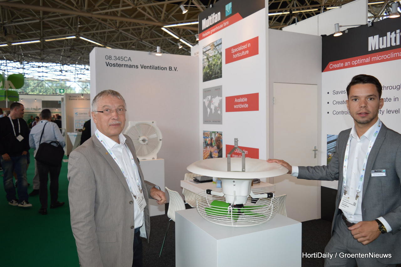 Guus:"Ventilation plays a vital role in modern greenhouses. Vertical ventilation results into a better and more uniform climate and energy savings. Because of several energy technical improvements in modern greenhouses and more intensive cultivation methods, the necessity of controlling humidity levels on crop level increases. With the V-FloFan, Vostermans Ventilation offers the grower the opportunity to reduce the negative impacts, due to humidity, in a simple and energy efficient way. The air is distributed over a wide surface through an aerodynamic conductor. The V-FloFan can be applied for a wide range of crops.The fan is easy to mount in greenhouses and easy to maintain."