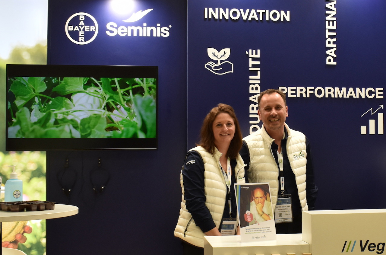 Clémentine Crombrez and Alexandre Dieu on the Bayer, Seminis/De Ruiter stand.