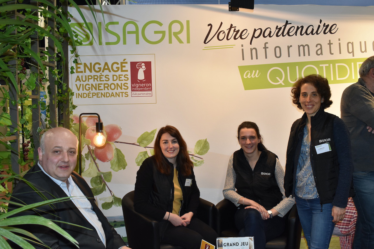 Pierre Vernay, Roxane Loretzin, Elinore Guillemot and Aude Bouvattier on the Isagri stand.