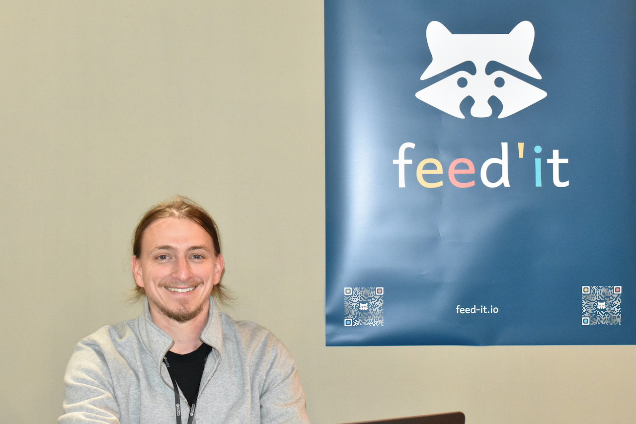 Guillaume Cecchini, Director and Co-founder of Feed'it, digital solutions for agriculture, on the Digital Farm stand.