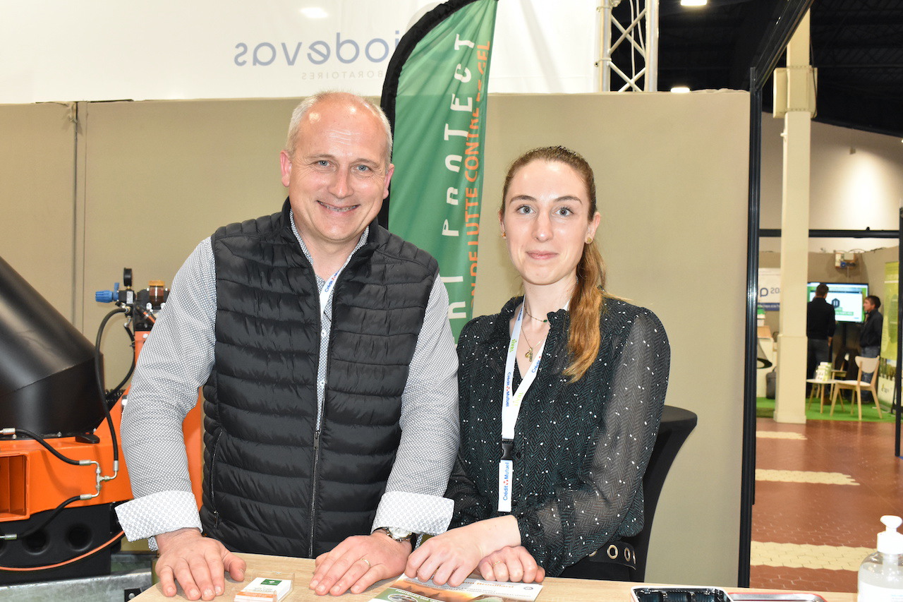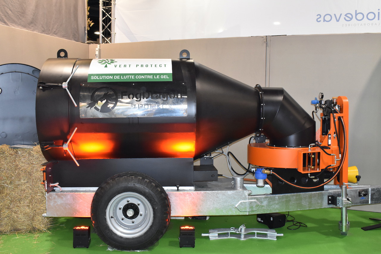 Marc and Romane Simon from the company Vert Protect who came to present their solution to fight against frost: the mobile biomass boiler Dragon Brouillard.