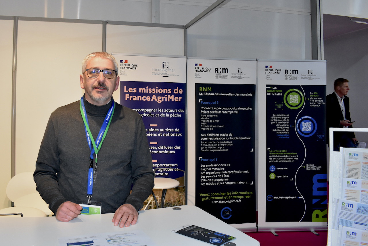 Stéphane Marchand, head of the RNM Angers-Tours center on the France AgriMer, Réseau des Nouvelles des Marchés (RNM) and DRAAF joint stand.