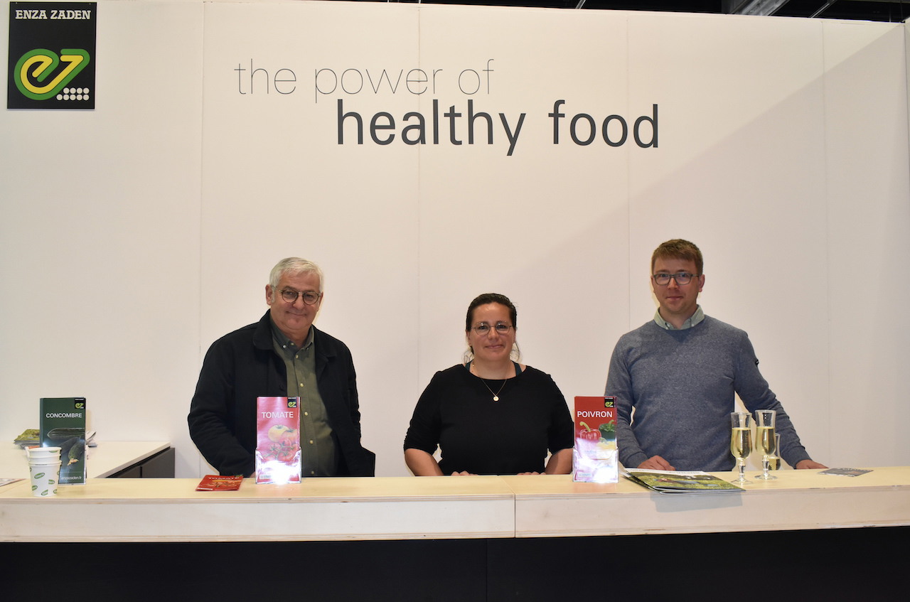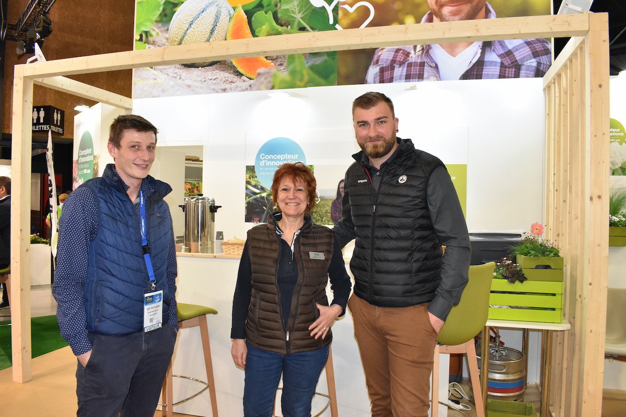 Bernard Loyer, sales technician, Amélie Dumas, lettuce breeder and Thomas Dupuy, sales engineer and melon product manager, on the Enza Zaden stand.