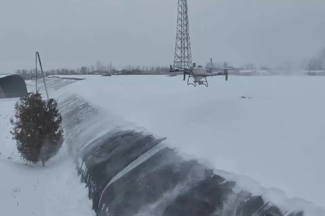 Chinese growers use drones to protect greenhouses from snow damage