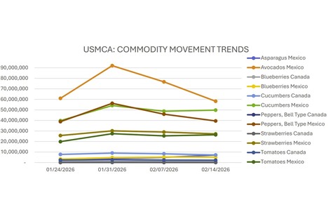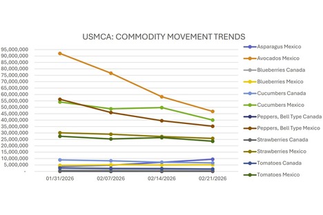 Strawberries down sharply as avocados and green peppers move higher